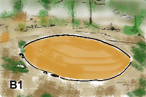 Le site H1022 (carte n° 6) est la tombe d’un sorcier de la région d’ALELE, et rien dans le paysage ne laisse supposer son existence. Nous avons très peu d’information sur les sépultures des gens communs. Il semblerait qu’ils étaient inhumés entre autres de cette manière.
