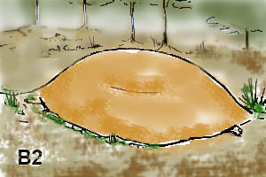 Type B2 : La sépulture est élevée, légèrement bombée ou plate.