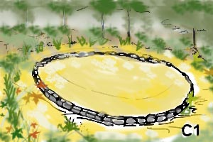 Sépulture en terre en forme de tertre rond ou ovale avec un entourage de blocs de pierre. Ce type se subdivise en deux catégories