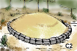 Type C2 : La sépulture est élevée et légèrement bombée.